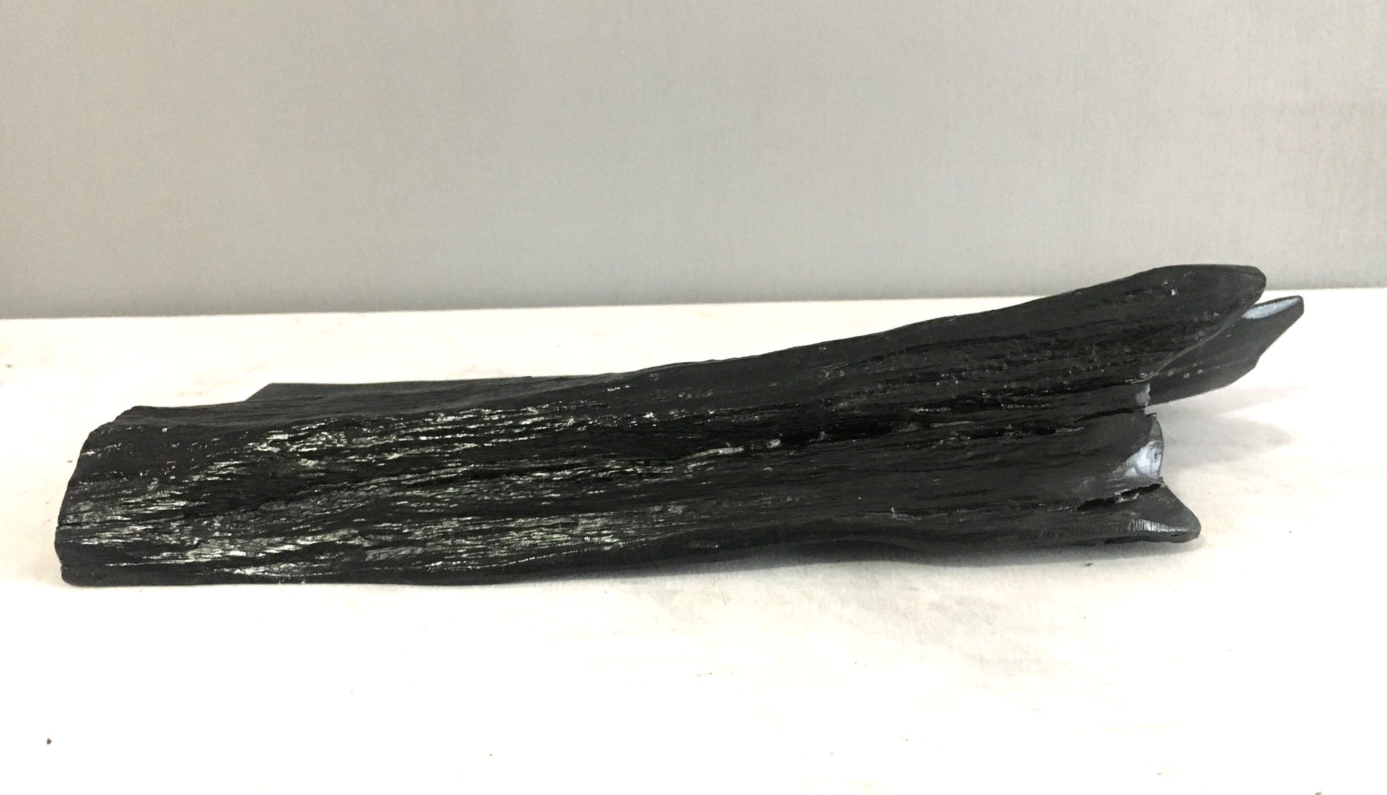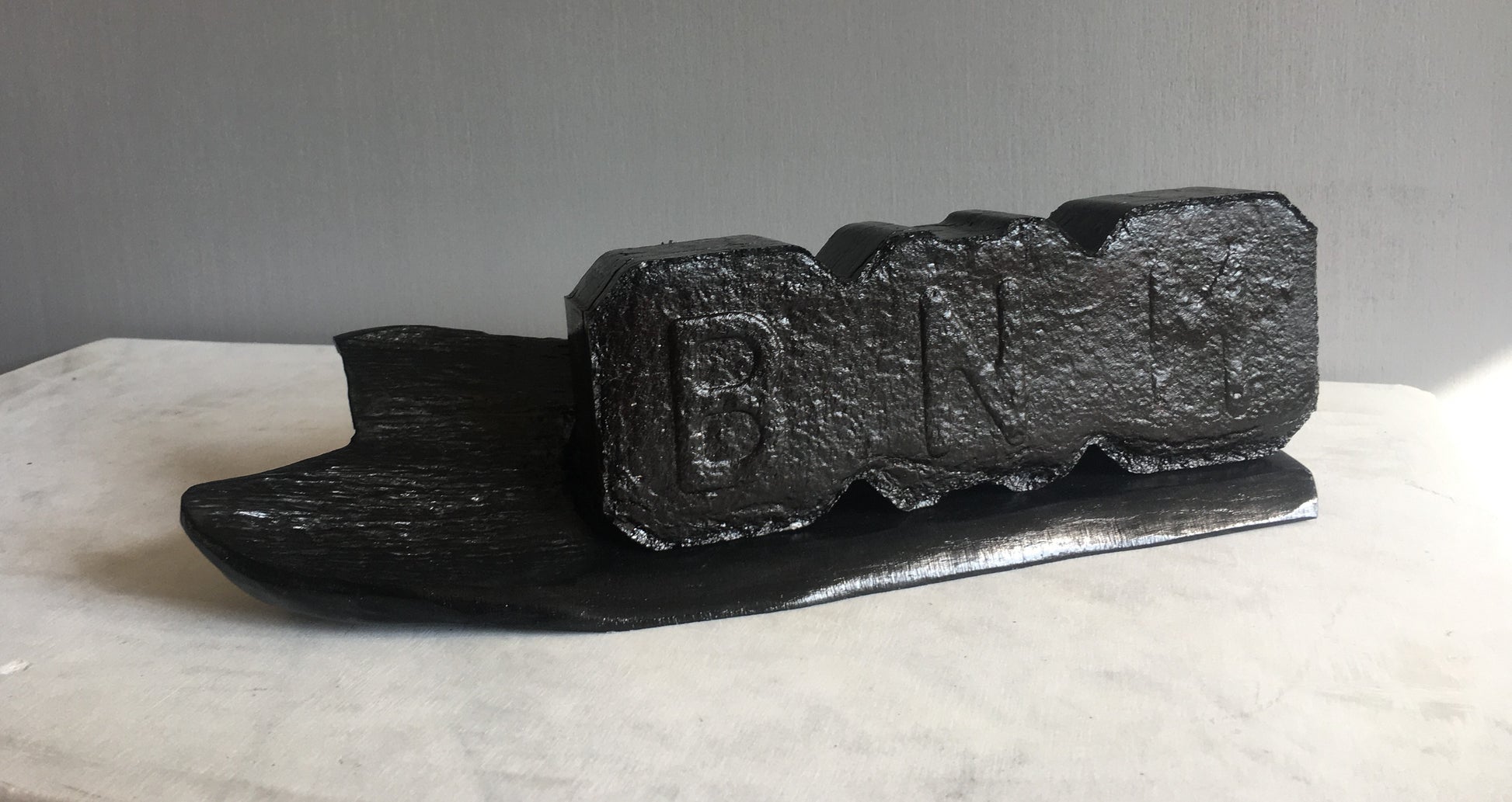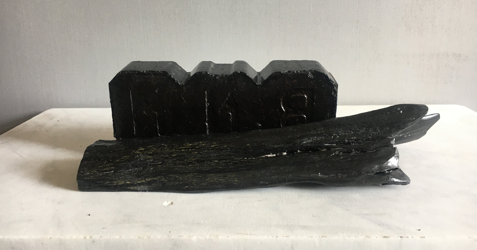An ironic story of a sleigh shaped piece of bog oak thousands of years old carrying an iconic Irish Bord na Mona peat briquette. Thousands of years ago it was this peat that preserved this oak from extinction but now the peat briquette is extinct. With the termination of turf cutting and peat harvesting, bog oak and bog peat will again lie together for millennia.