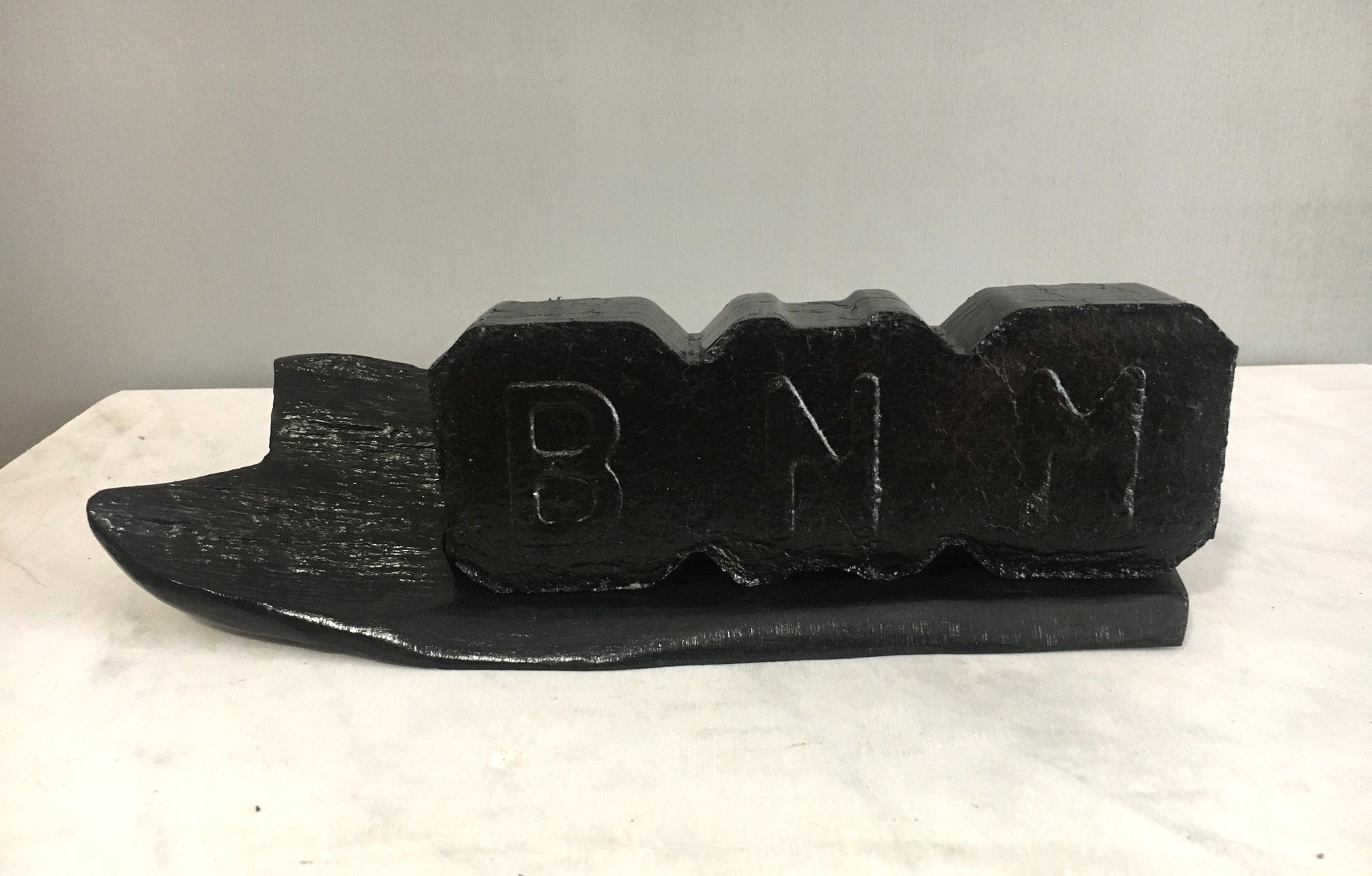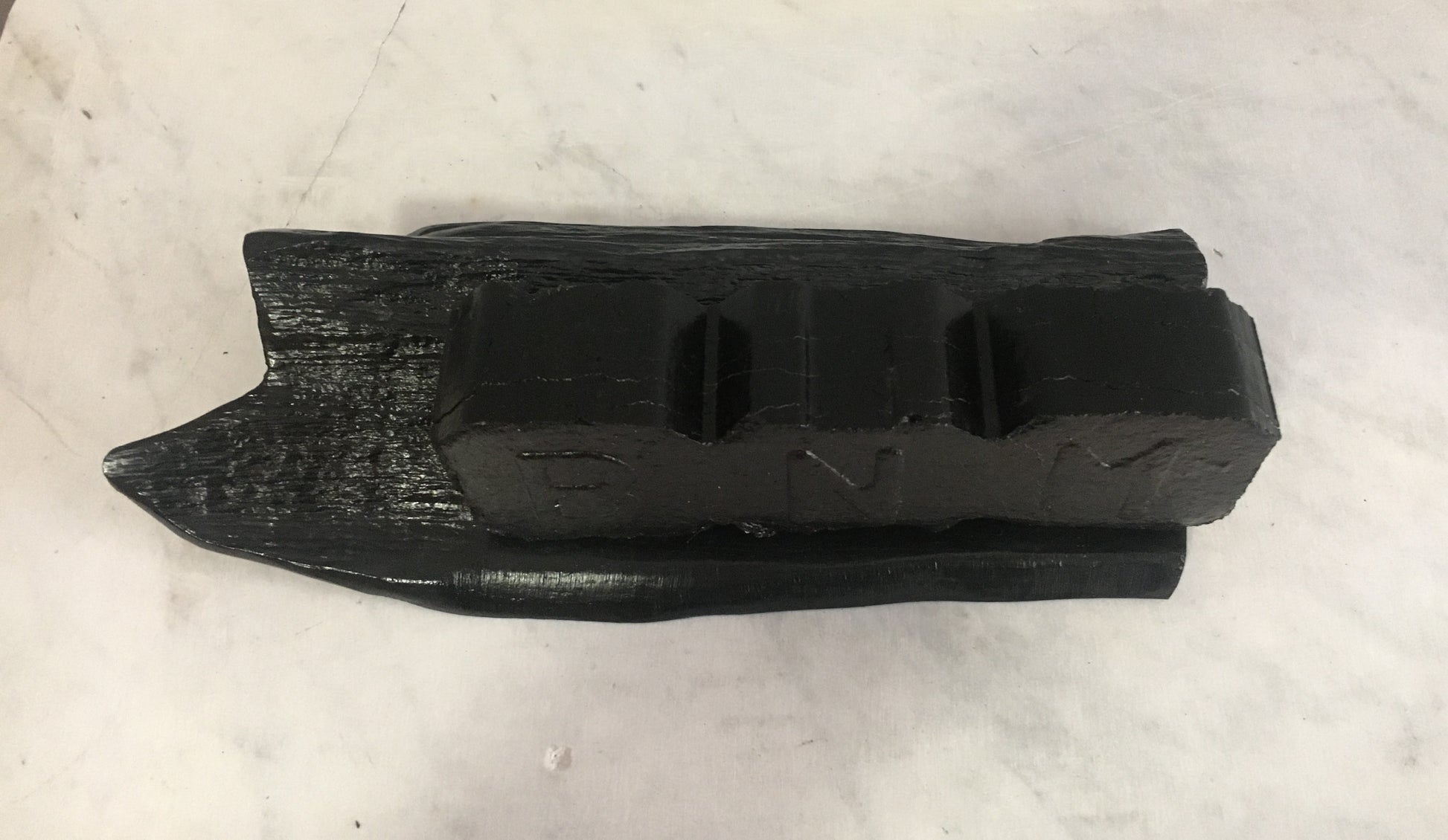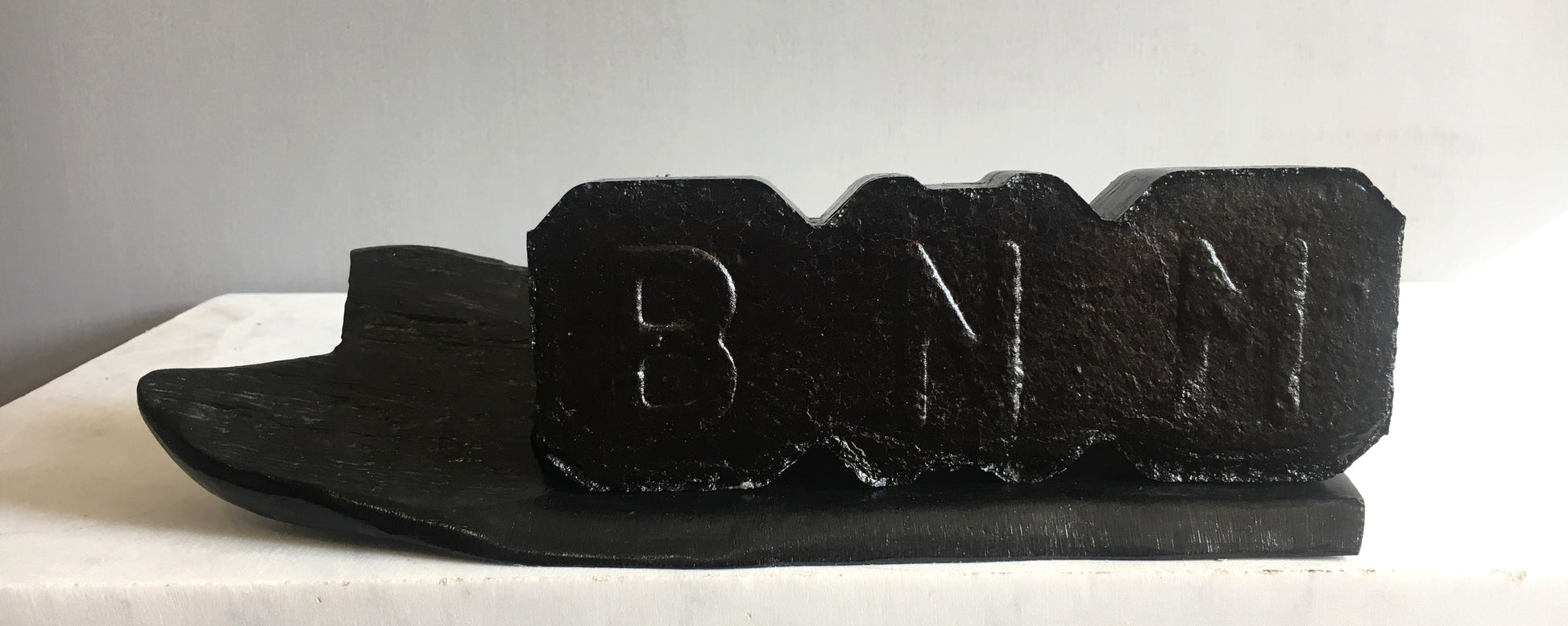 An ironic story of a sleigh shaped piece of bog oak thousands of years old carrying an iconic Irish Bord na Mona peat briquette. Thousands of years ago it was this peat that preserved this oak from extinction but now the peat briquette is extinct. With the termination of turf cutting and peat harvesting, bog oak and bog peat will again lie together for millennia.