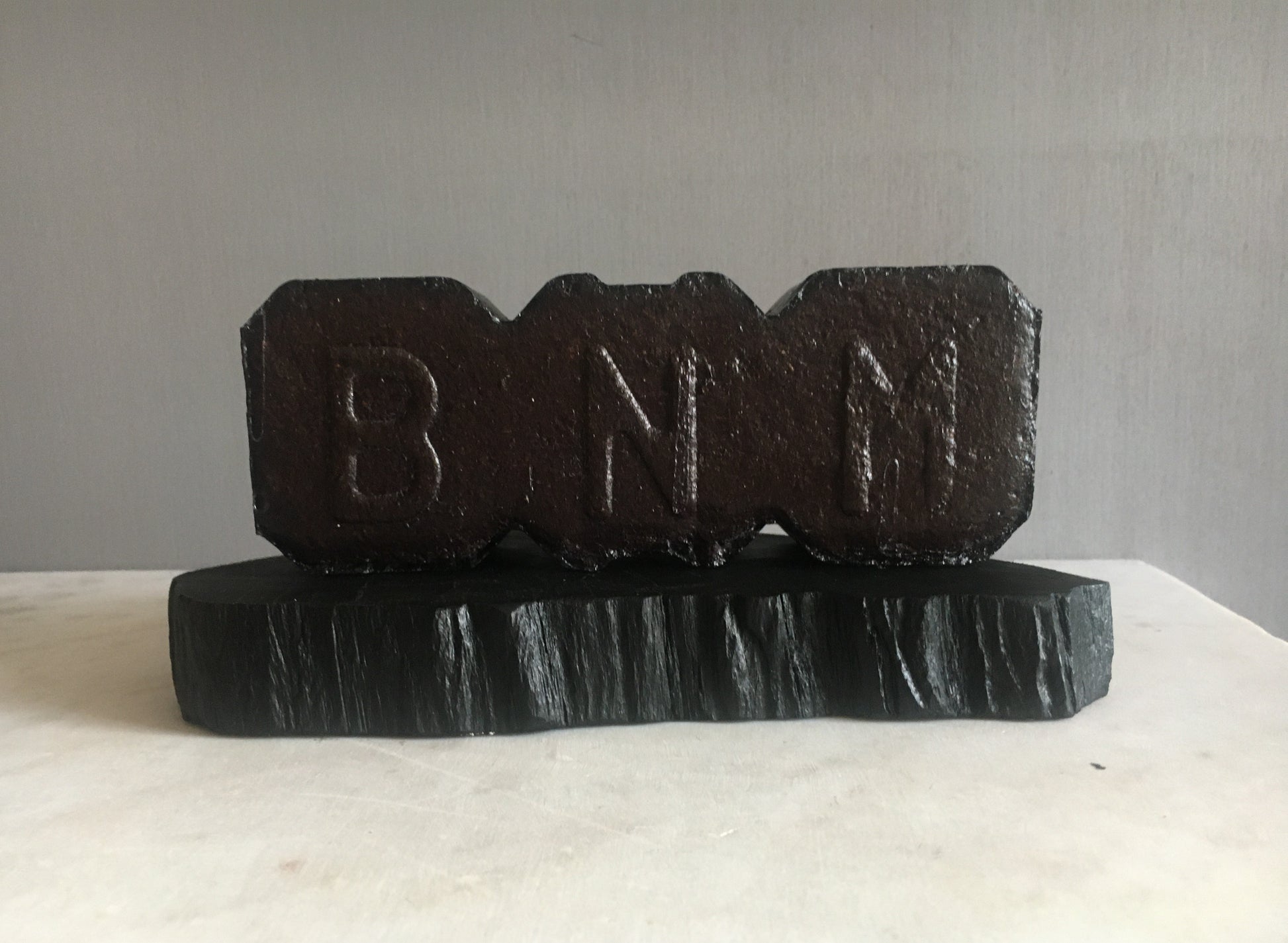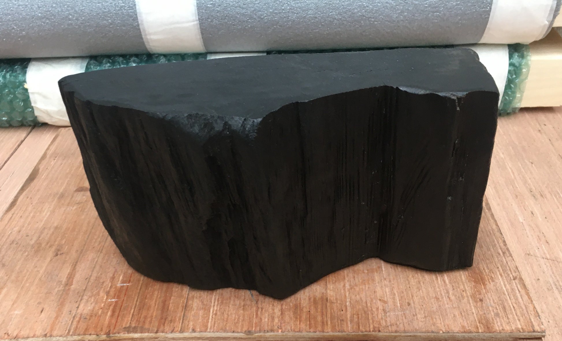 The iconic Irish peat briquette was created by the Irish State via Bord Na Mona (BNM) after world War II to alleviate the vast world fuel shortages. The briquette soon became a heating fuel mainstay in most Irish homes, both rural and urban and stirs up nostalgic and warm memories of cosy nights by the sitting-room fire during the cold and dark wintery months. Ironically it was the peat in the briquette that minded and preserved the bog oak for thousands of years in the Irish bogs. Due to Global warming, peat harvesting and turf cutting has ended. The BNM peat briquette and the unearthing of bog oak will be no more - bog oak and bog peat will again lie together undisturbed for millennia.
