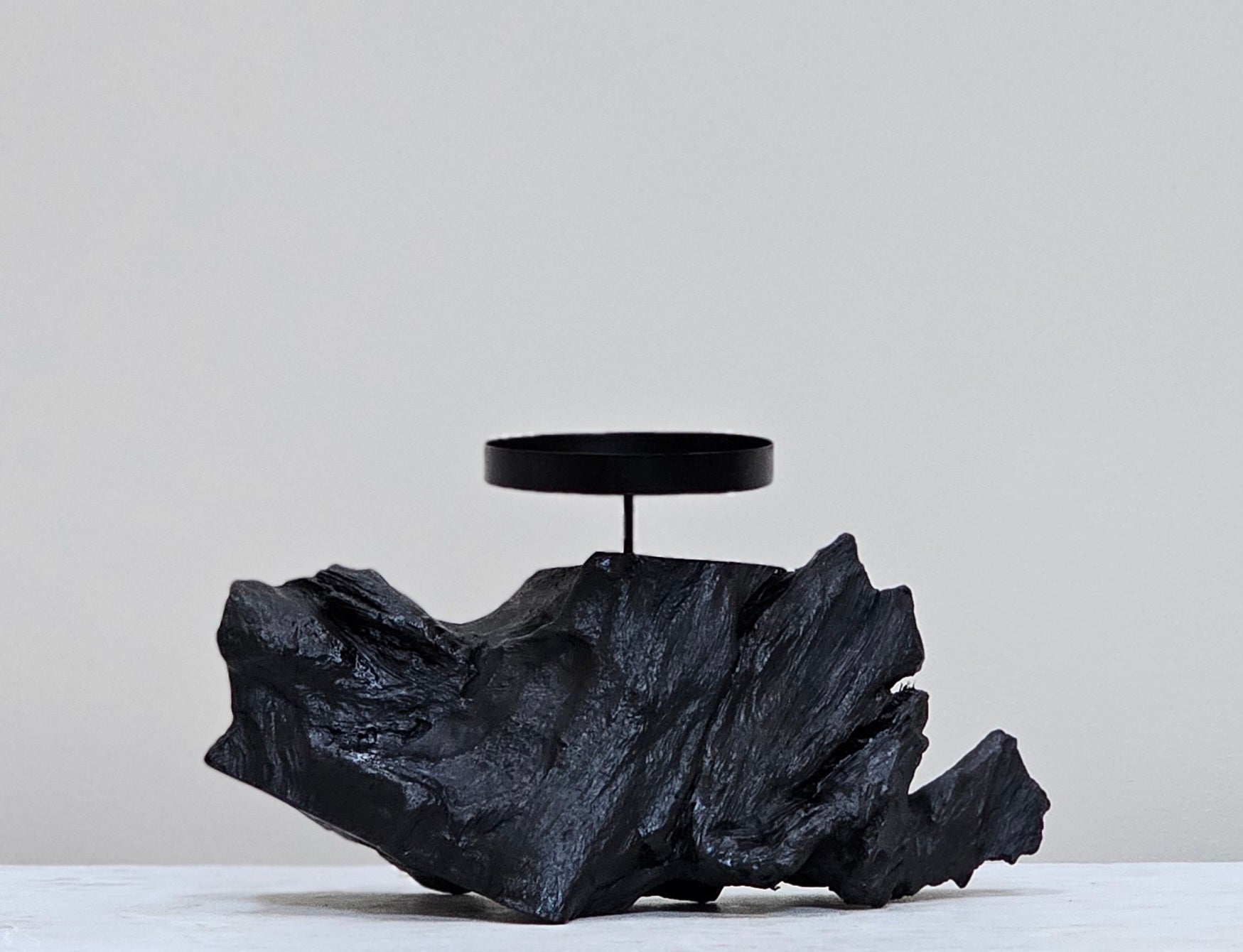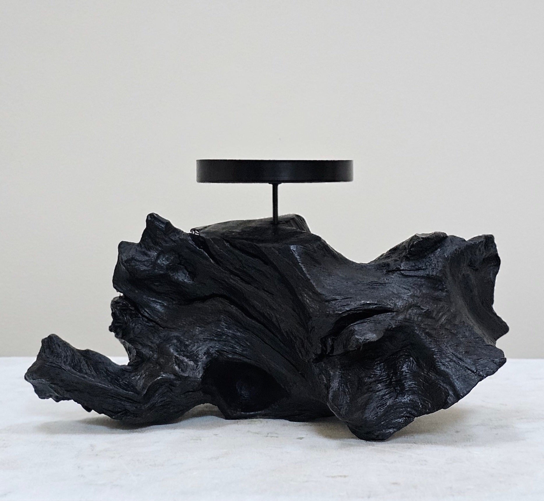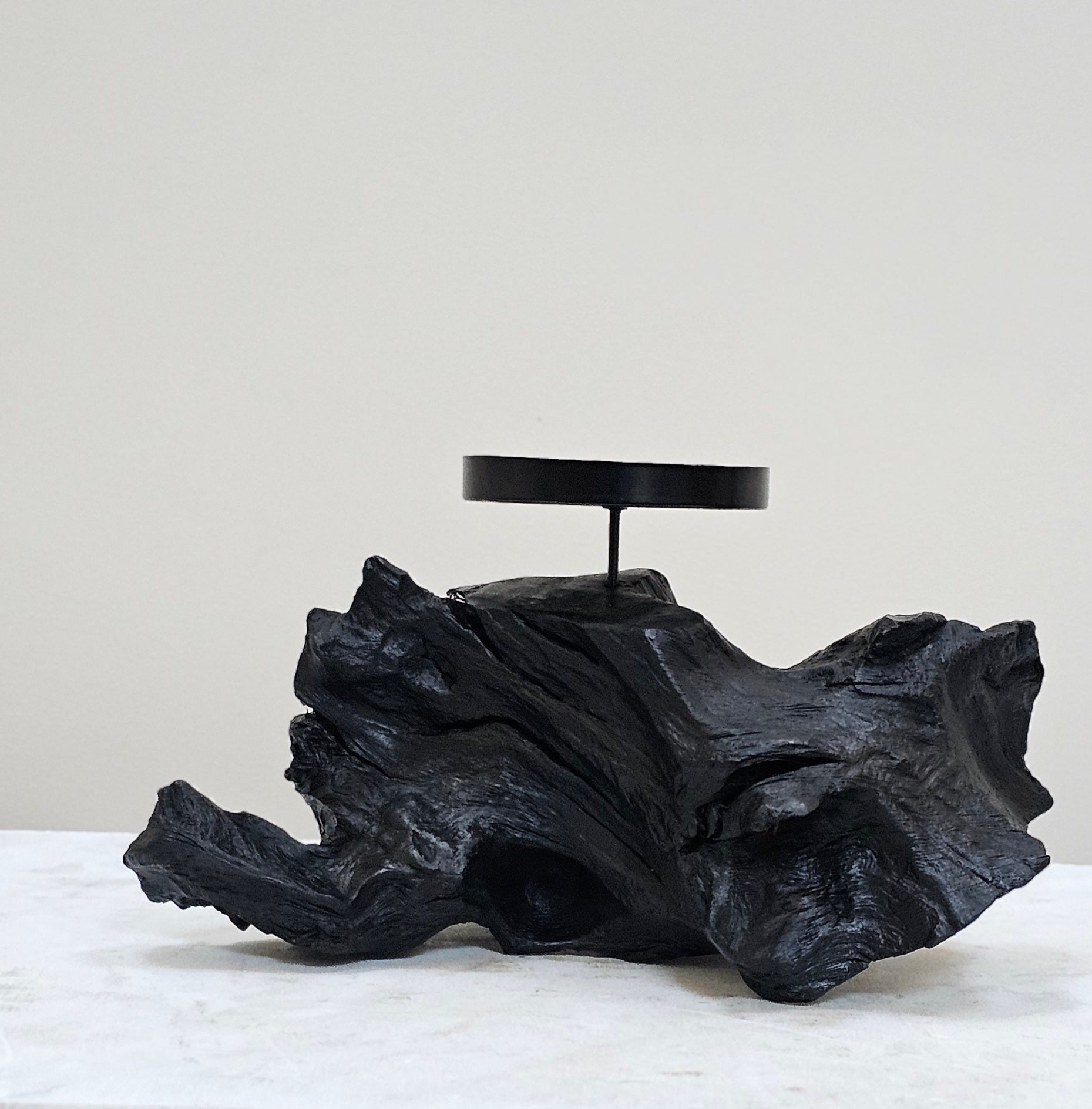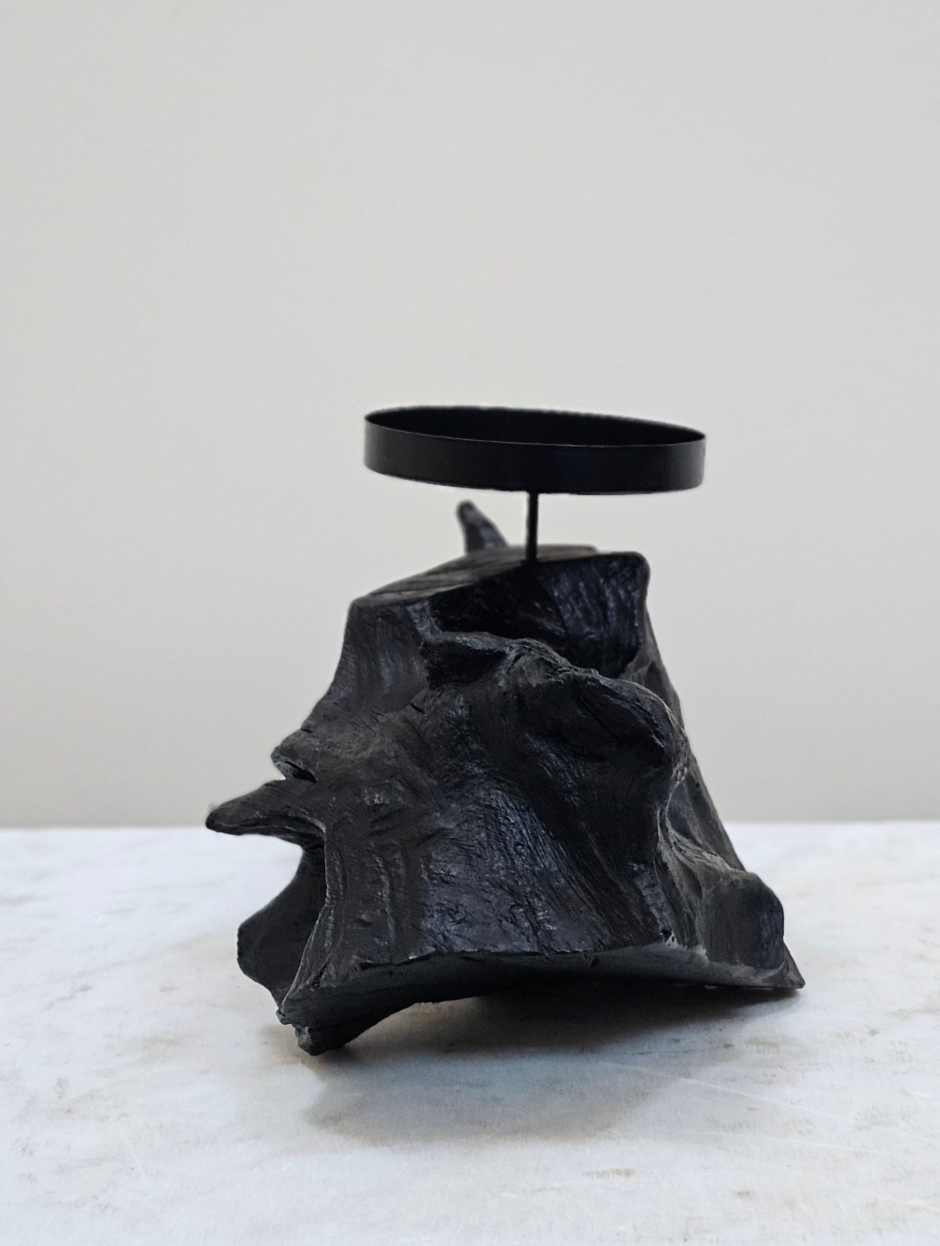 When working and shaping bog wood pieces many offcuts land on the workshop floor . All these pieces are unique with incredible grains, cracks, twists and curves .Having survived 1000s of years in the bog they deserve to be preserved so I clean and polish the piece to reveal its natural beauty. In a piece of bog wood thousands of years old, we simply insert a candle and holder to shed light on time!