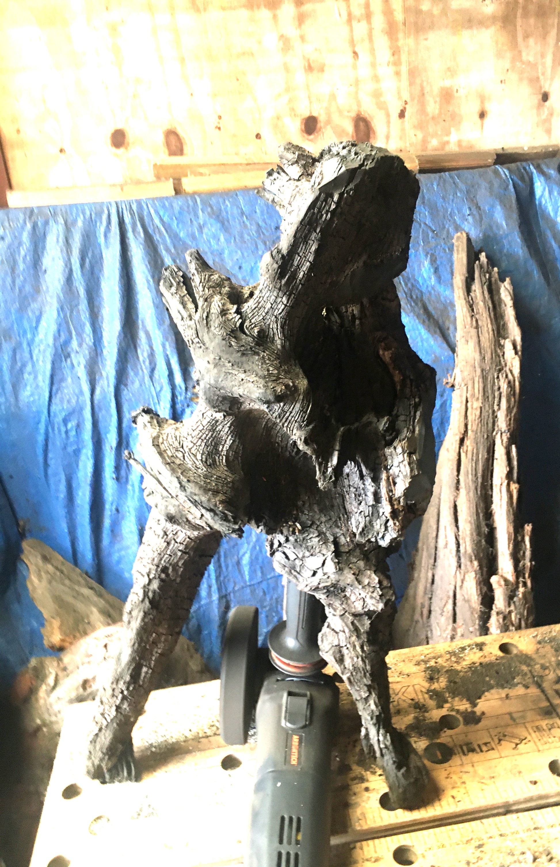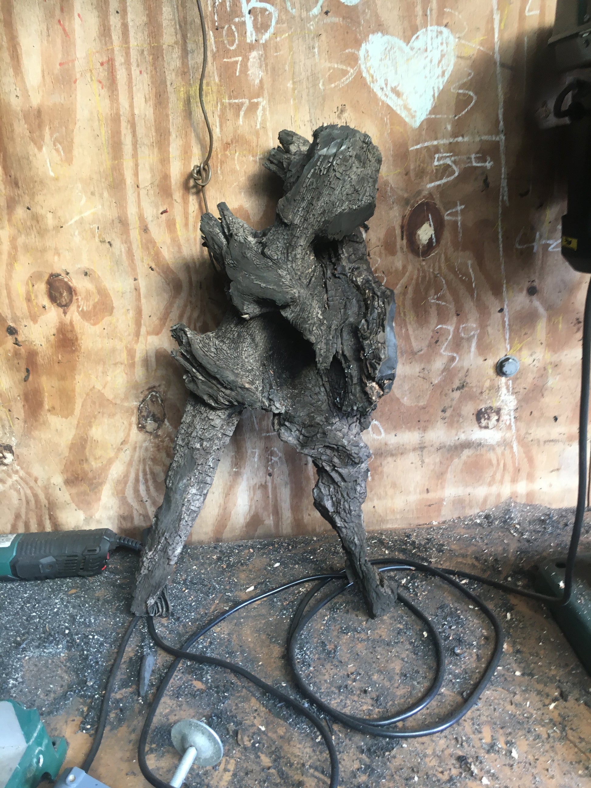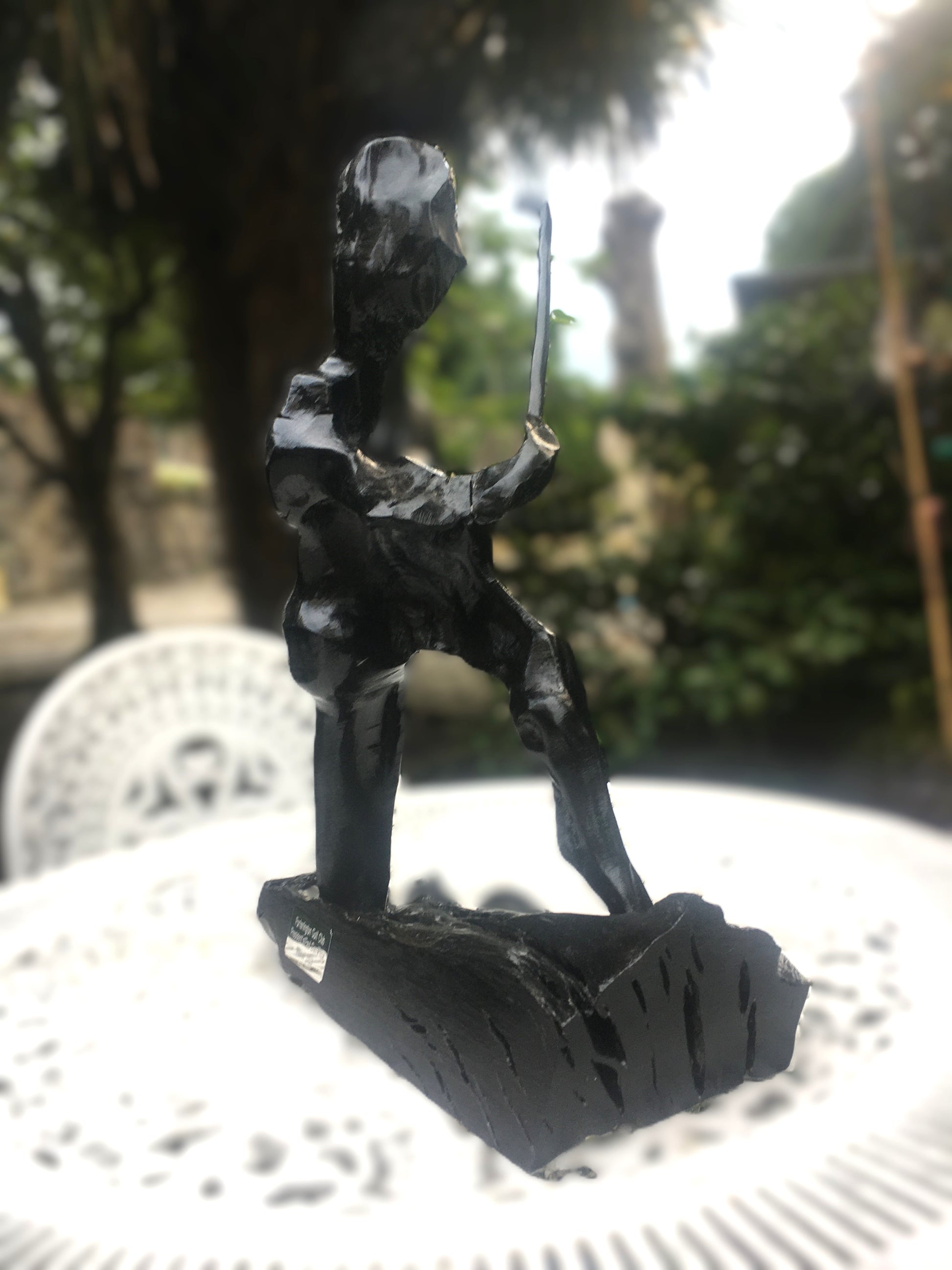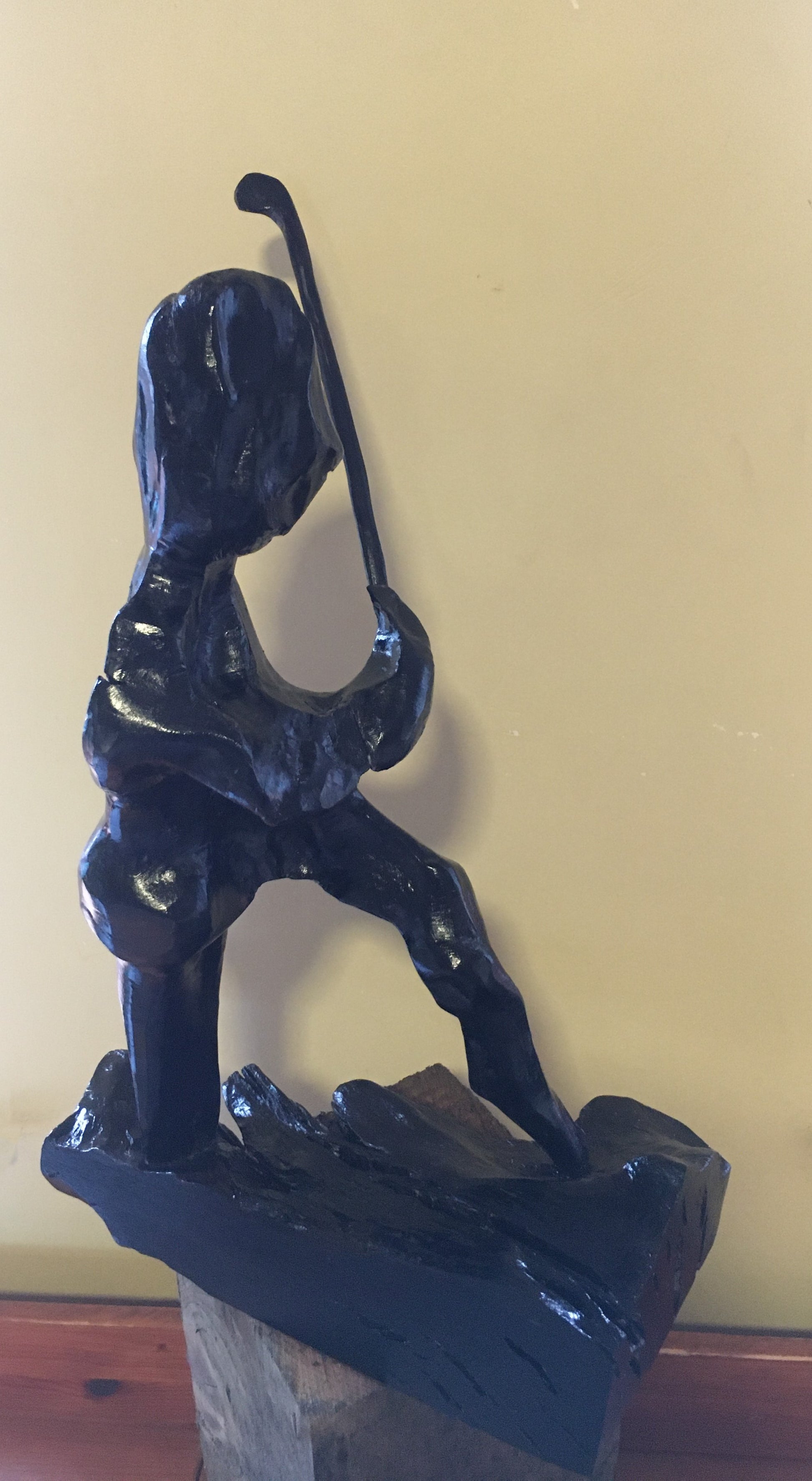 I don't normally do commission pieces but a friend and neighbour who was president of a local golf club asked me to create a piece for the president's prize golf tournament that year - as a one off I agreed but had no idea what to do until I found a piece in the workshop that looked like a man in a standing position post swing - so I just added a golf club!