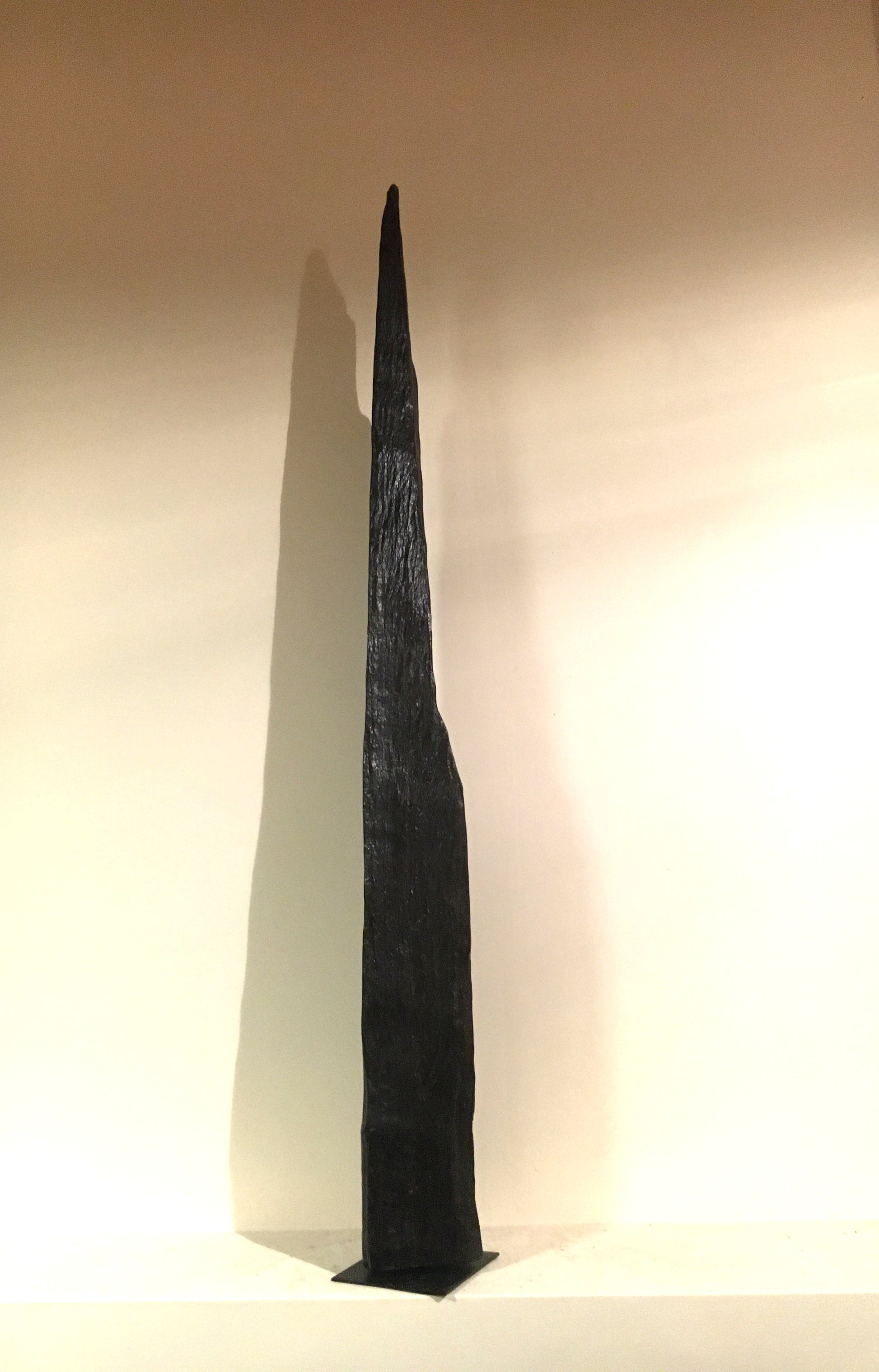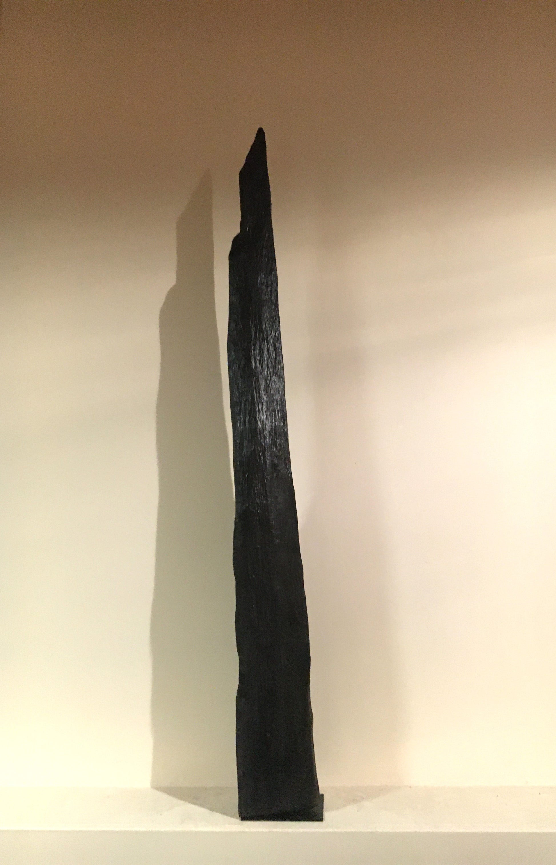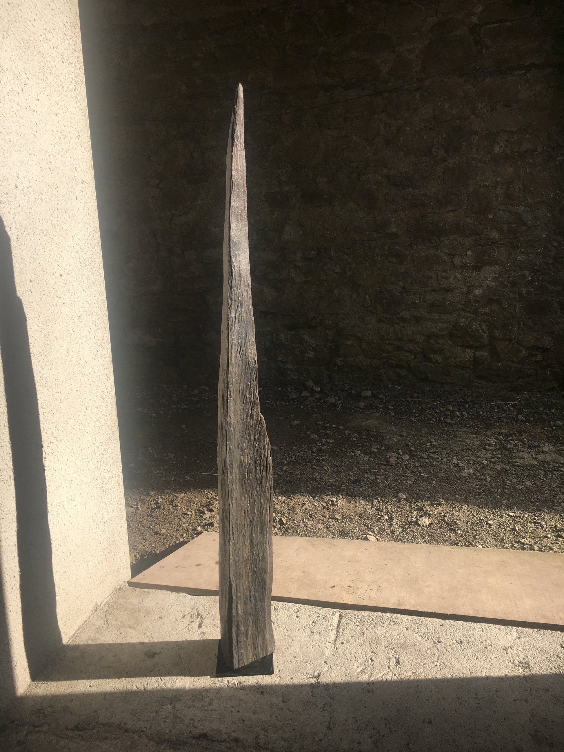 This straight, slender and proud standing piece of bog oak is exactly the shape that emerged from the bog - I removed the covering of peat and earth and left the existing even surface of the wood rough and as close to the original texture as possible,