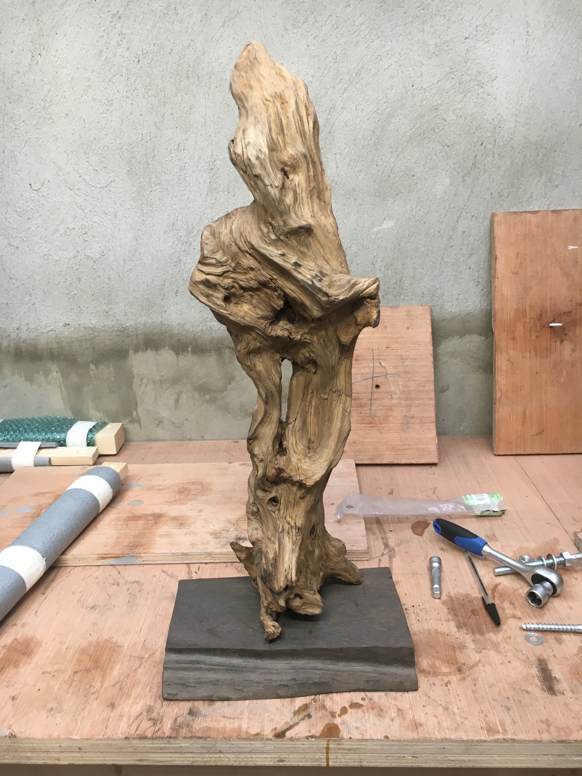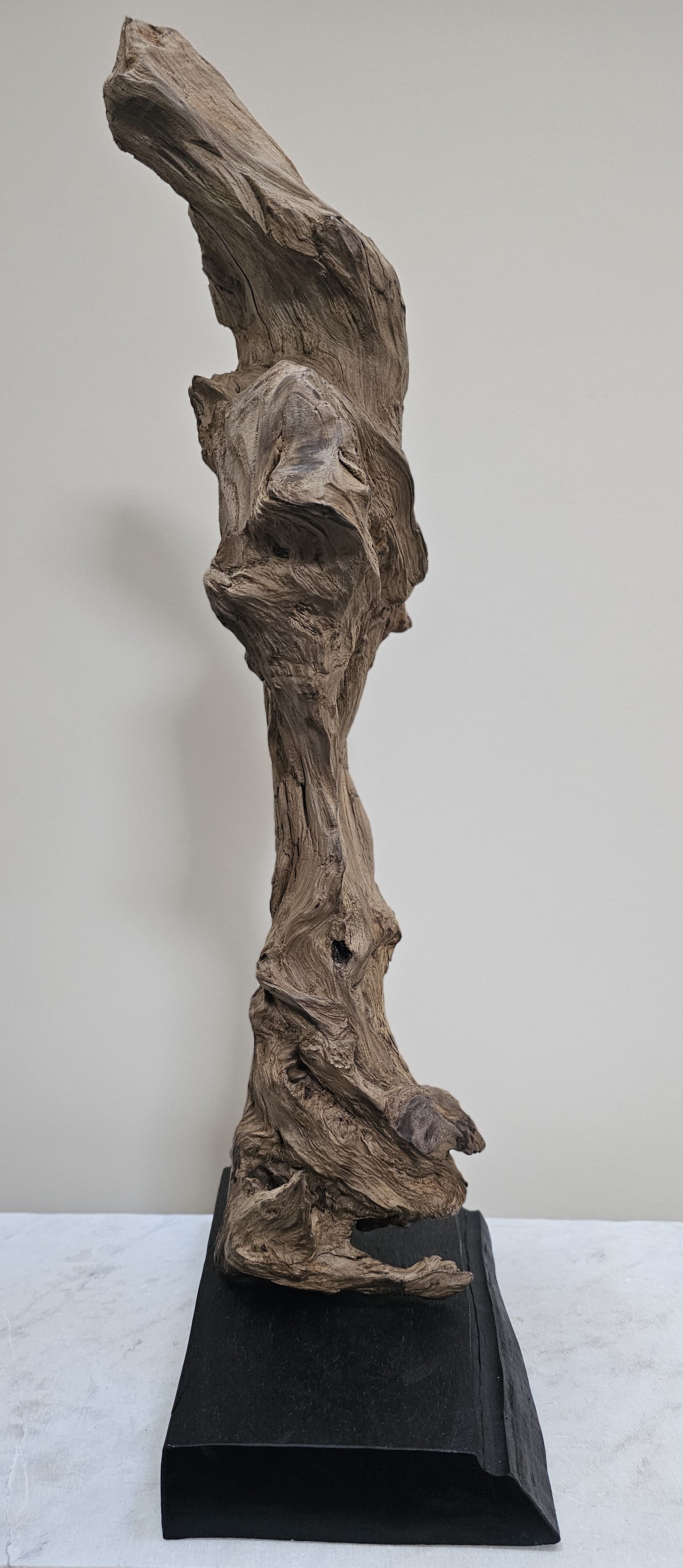 This amazing twisted and knotted piece of bog pine was found in a bog in Co. Laois having been compressed and preserved by the peat for 1,000's of years. I cleaned off the peat, decayed wood and bark to reveal its natural beauty and mounted it on a beautiful base of polished bog oak.
