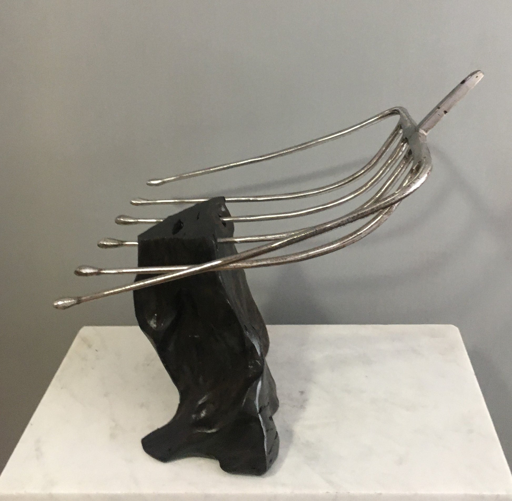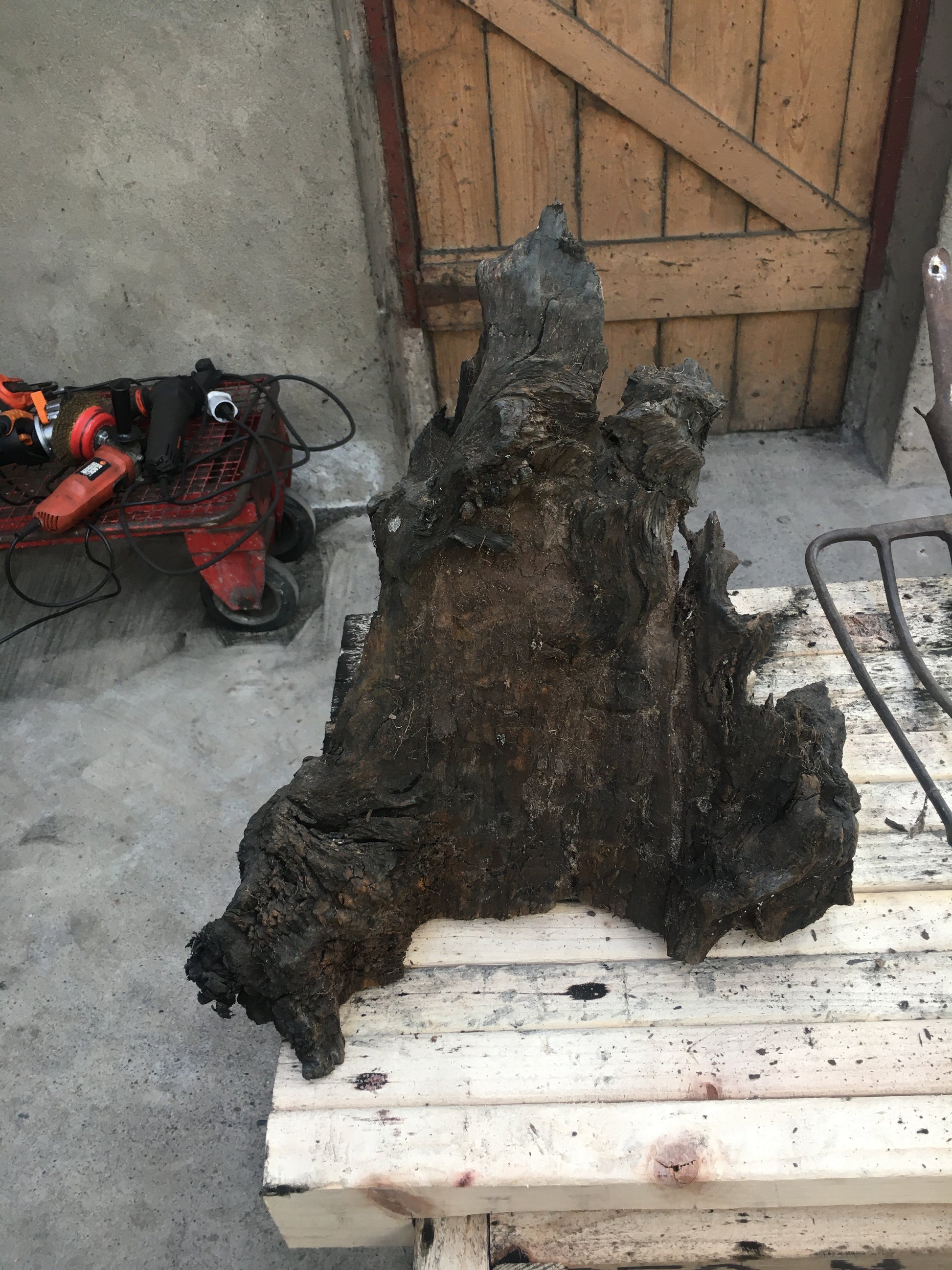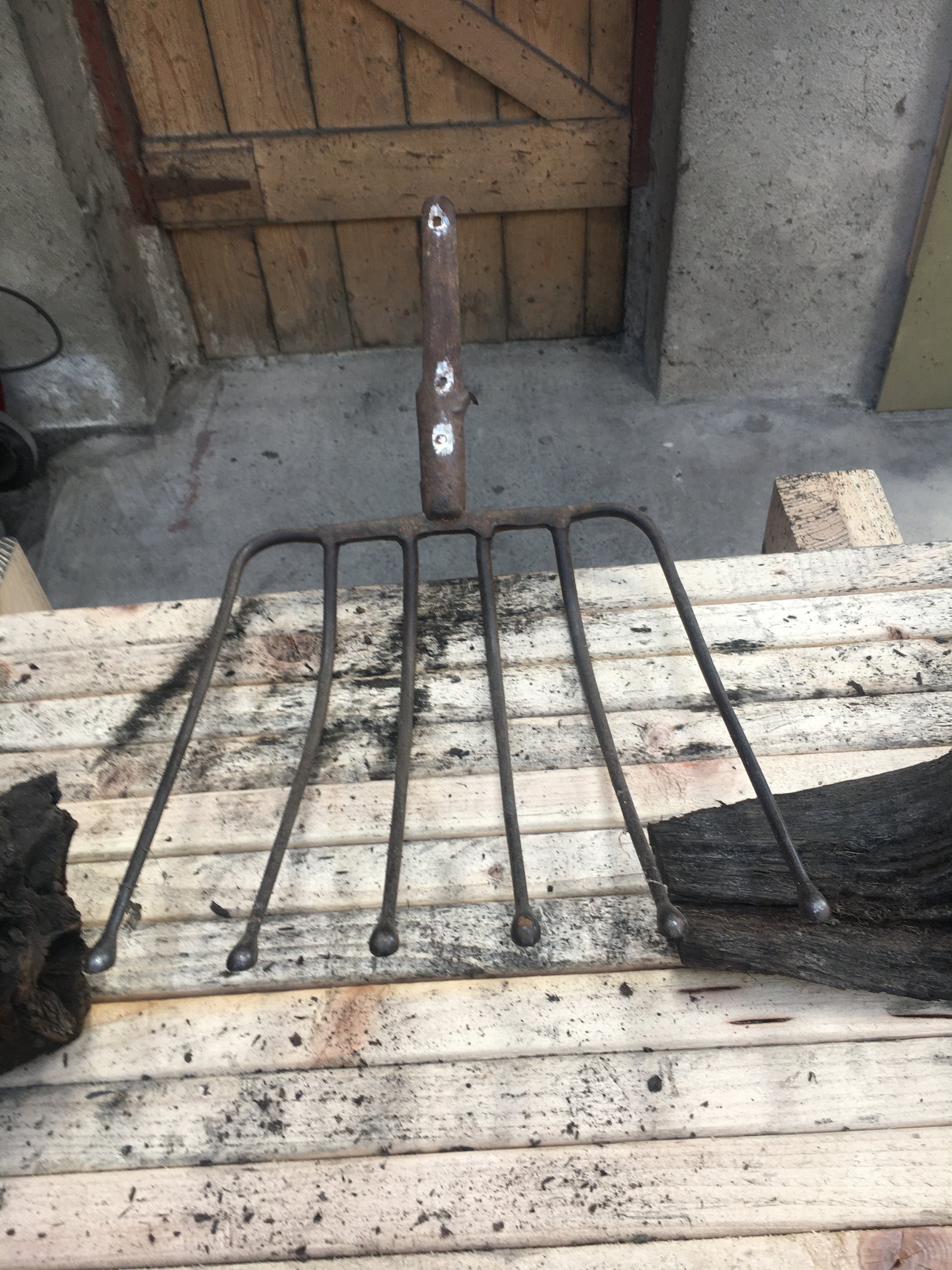 The dread of many, the infamous turf sprong. This workhorse loaded thousands of tons of turf off the bogs of Ireland onto all types of trailors, big and small, and then unloaded it again into sheds when brought home. This turf sprong is now retired and rests ironically on a piece of bog oak exhumed when the turf was cut from the bog.